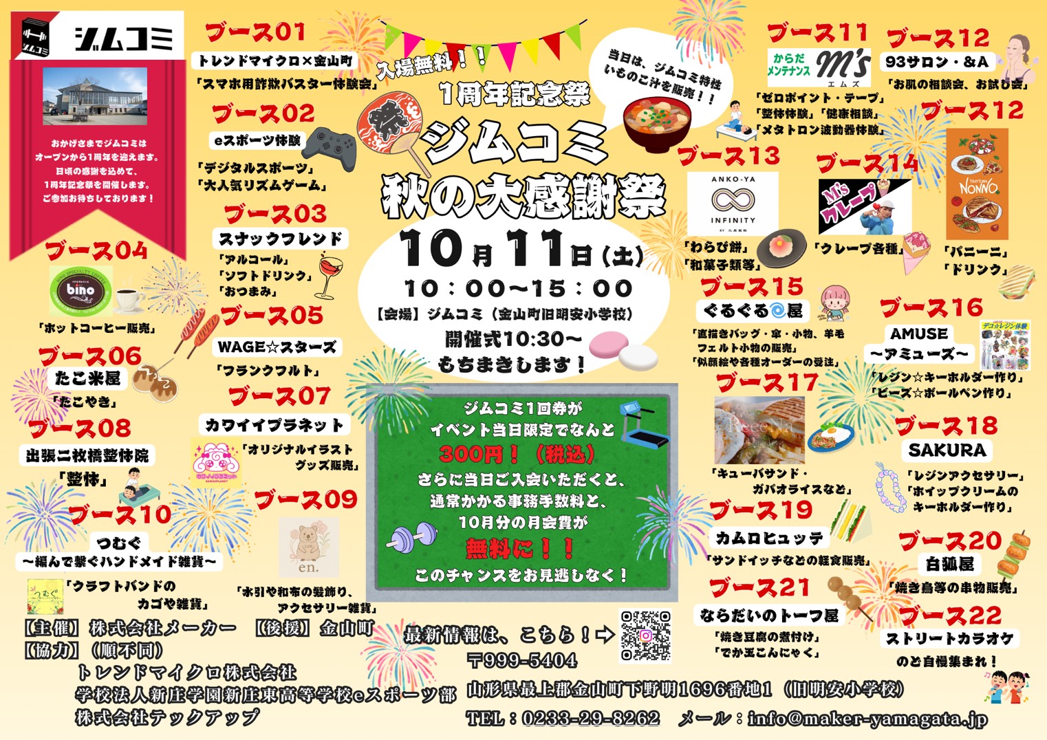 金山町にある旧明安小学校で行われた「ジムコミ秋の大感謝祭」のeスポーツ体験ブースで協力させて頂きました。運営は新庄東高校のeスポーツ部の方々にお願いして、太鼓の達人やswitchスポーツの体験ができる楽しいブースとなりました。餅巻きなどの楽しいイベントやおいしい芋煮のほか、たくさんの飲食ブースとワークショップがあり、半日いてもずっと楽しいイベントでした。また是非参加させてください。